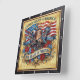 Celebrate a historic quarter-millennium with the USA 250 Years of Freedom Liberty Bell clock. This high-energy timepiece features a high-definition graphic that meticulously captures American iconicism. The design centres on a bronzed Liberty Bell and the Torch of Liberty, set against a backdrop of a waving American flag and a soaring bald eagle. Banners marking "1776" and "2026" flank the bell, while the base features a grand golden scroll proclaiming "250 YEARS OF FREEDOM" amidst a bed of red roses and blue cornflowers. The artwork is presented on a vertical light-wood plank background and encased in a dark, textured square border. While the imagery masterfully mimics the dimensional, impasto-style texture of painted wood and metallic relief, this is a durable high-definition graphic application on a premium clock face.