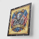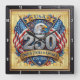 Celebrate a quarter-millennium of American pride with the USA 250th Anniversary Shield Eagle clock. This high-energy timepiece features a high-definition graphic that centres on a powerful bald eagle head set above a massive, ornate "250" rendered in a polished silver and gold relief style. The design is framed by two crossed American flags and a lower shield motif, with a grand golden banner displaying "UNITED STATES OF AMERICA" and the historic "1776–2026" milestone. Set against a light-toned vertical wood-plank background and encased in a dark, textured charcoal square border, the artwork masterfully mimics the dimensional, high-relief textures of a commemorative military medal or stone carving. However, this is a durable high-definition graphic application on a premium clock face, making it a prestigious and bold addition to any home or office.