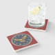 This coaster blends classic Americana with a sophisticated, textured finish. It features a patriotic emblem centered on a natural stone base, making it both a functional piece of barware and a decorative accent. Design Details: Central Imagery: A detailed bald eagle in mid-flight with its wings outspread. The eagle is rendered in gold and brown tones, set against a deep navy blue circular backdrop. Symbolic Accents: A ring of white stars encircles the eagle, framed by a delicate silver-toned border.Color Palette: A bold "patriotic trio" of navy blue, rich crimson red, and gold, accented by the cool grey/white of the natural marble.Material & TextureBase: Crafted from honed marble or tumbled stone, providing a heavy, high-quality feel.Edge Work: The coaster features a distinct deep red border that frames the central seal, giving it a polished, "official" look.Natural Variation: Because it is stone, the edges may have slight, intentional distressing or "weathering," which adds a rustic, antique character to the piece.Product SpecificationsFeatureDescriptionShapeCircularMaterialNatural Marble / Absorbent StoneBackingTypically cork-backed to protect furniture surfacesStyleTraditional, Military-Inspired, or FederalNote: The design strongly resembles motifs used in U.S. government or military seals, making it an ideal gift for veterans, history buffs, or as part of a classic study or office decor.