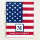 God Bless America. The Land Of The Free. This red, white and blue American flag design can be given as a gift for a 4th of July party, Independence Day celebrations, military graduation, police retirement, family reunion, Memorial Day event, company picnic, wedding, beach house, backyard barbecue or any occasion. The patriotic USA flag monogram design can be personalised with the initial and name of the family, company or retired employee. The design is yours to customise as you wish.