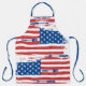 Fun USA-patriotic kitchen or grilling apron featuring tattered or aged American flags plus meat forks and spatulas, perfect for looking cool while cooking or at the grill.