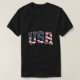 Show your patriotic spirit with this design featuring the American flag in the shape of the text USA. Perfect for those who want to express their love for their country.