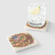 The coasters are gorgeous, a quality feel and heavy weight. They look like a precious archeological find. A rustic stone juxtaposed with a modern floral black and white print. I like the way the print goes slightly imperfect on the cut stone edges giving them a kind-of natural beauty.