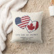 Love has no borders! Our super cute personalised flag throw pillow for US and Canada couples features the sentiment in navy blue typewriter style lettering, with the USA and Canada flags inside hand-drawn style hearts. Shown on a cream / ivory background. Add the couple's names and wedding date for a sweet keepsake!