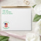 Personalised envelopes show an angel wearing the USA Flag for holiday decorating or Christmas decor for snail mail. The Christmas angel is found surrounded by text allowing you to add your own text or personalise with a name and the year. Lettering is green, but can be changed by using the "edit design" option. Share your American culture and ancestry this holiday season.