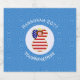 Wine label features a red haired angel wearing the flag of the United States of America on this sticker for holiday gift decorating or Hanukkah party decor. The USA Flag angel is found inside a white fractal circle of squiggly squares. The background is blue, fractal squiggly squares. Add your own text or personalise with a name and the year.