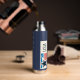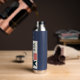 USA navy blue water bottle featuring a modern stars and stripes design. Patriotic. Custom text. Change the text on the water bottle or leave as is. Use the template to create your own USA water bottle.