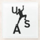 American boulderer climbing on USA letters. Black picture on a white background