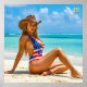 Celebrate the timeless allure of beach style with our USA Girl Swimsuit Poster. With her confident smile, patriotic swimsuit, and a splash of American spirit, this poster brings a vibrant vibe to any space.