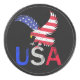 An American eagle in stars and stripes flying over “USA” in red, white, and blue. A unique American gift for the 4th of July or other special occasions to express your patriotism.