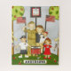 Unique family gift puzzle featuring dad boy scout, mum with baby, and two young kids plus the American flag. To personalise edit text to change name and the year.