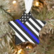A Thin Blue Line American flag graphic display. A great gift idea for gatherings, memorial celebrations and remembrance occasions.