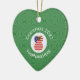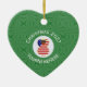 An African American angel wears the flag of the United States of America on this Christmas decor heart shaped ceramic ornament. The African American USA Flag Christmas angel is inside a white circle of squiggly squares, surrounded by a background of green squiggly squares. Add your own text or personalise with the year and a name.