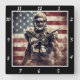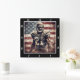 This bold wall clock features a powerful American football player set against a striking U.S. flag background. A perfect blend of patriotism and sports energy, it’s ideal for fans, athletes, or anyone looking to add fierce team spirit to their space.