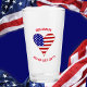 Personalised beer or drinking glass designed to share your love of all things American, a large apron with a heart-shaped flag of the red, white, and blue flag of the United States of America and a blue background. Above is a spot for your name (or someone else's, if this is a gift), below a place to write an occasion (birthday, Valentine's Day, Independence Day, etc.) and year. Enjoy your event while honouring your love of your heritage. Great housewarming gift. Terrific for family reunions and friend reunions, too.