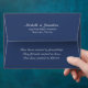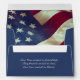 Wedding envelope with patriotic USA Flag depicts the red, white and blue American flag stars and stripes. It features return address and Christian inspirational quote, "Two lives united in friendship, Two friends united in love, One love united in Christ."