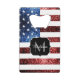 Personalise sparkly bottle opener with your initial and name. 4th of July USA flag in red and blue faux sparkles & glitters. We use photo of sparkles glitters.