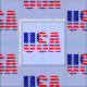 USA Flag Red White Blue on pale blue background Fabric