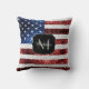 USA flag red white blue sparkles glitters Monogram Cushion