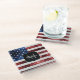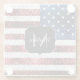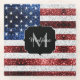 USA flag red white blue sparkles glitters Monogram Glass Coaster
