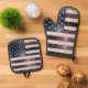 USA flag rustic faux sparkle patriotic bling Oven Mitt & Pot Holder Set