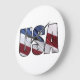 USA in Red White and Blue American Patriotic Flag Large Clock