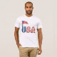 Bold colourful letters spell USA with stars and stripes. American Flag adds special touch to this patriotic design for July 4th or all year.