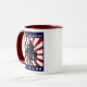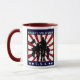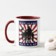 A patriotic American soldier silhouette mug. This mug features a silhouette of marching soldiers carrying a flag, on a red white and blue background, with stars and stripes. The mug reads 'Liberty and Justice, and USA on the bottom. Add a name to the back of the mug in the easy to use template area right on this page. To edit font style, colour, or size simply click on 'customise' and those options will be available for you as well. A wonderful addition to your mug or patriotic collection, or as a gift for friends, family, or anyone serving in one of the branches of the US military. For more military and patriotic cards and gifts please visit our shop.