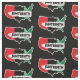 The graphic does not spread from selvedge to selvedge.