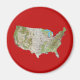 The design on this magnet features a map of USA with a flag-colour background. Add a little American flavour to your home.