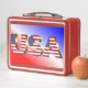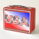 This is a standard metal lunchbox that appears to work just fine. We designed this box ourselves with an uploaded photo and custom text on the front and back. It looks absolutely beautiful except the front of the lunchbox is not centered like it shows in the photo. The print borders don't align with the inset flat part of the box where the preview photo online showed it perfectly centered in there. The back looks nice and centered though.