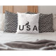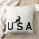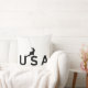 American mountain climber using USA letters to descend a rock by abseiling. Black picture on a white background