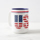 Show your olympic support with every sip with this USA coffee mug shown in a red, white, blue USA Flag print.