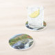 I'm not sure how much moisture these will soak up, haven't had a chance to try them out, but they look good and I like the cork backing. The printing is fine ~ and really looks cool with an artisan's hand made "Hurricane Martini" glass sitting on top of my painting (on the coaster) in my studio.