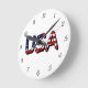 USA overlaid on US Flag Black Script Numbers wccnt Round Clock