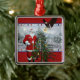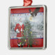 Beautiful holiday USA patriotic Santa Claus premium silver square ornament. This ornament features Santa decorating a Christmas tree, with an American eagle flying in to place the golden glowing star on top. The background is a wintery mountain scene, with a red snowing border on top. There are red, white and blue Christmas lights, and Santa is wearing an American flag patch on the front of his jacket. A wonderful addition to your holiday decorating, or gift giving would be a great gift for a veteran or someone currently in the military, or a collector. The art is displayed inside an elegant silver frame style ornament and also comes with a red ribbon to hang on your tree. This design is available on different shapes and styles of ornaments. For more military Christmas holiday themed styles of ornaments, gifts, stickers, tags, cards, stamps and much more please visit our store!