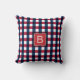 We were inspired by the famous gingham print to make this chequered patriotic pattern in red, white, and blue colours. You will love this US-coloured pillow that will add a trendy touch to your home. It is adorned on the front with a monogram printed in a modern white font on a red square enhanced with a thin gold border and a semi-transparent stroke. Please, replace the default monogram initial with yours (one letter only).