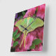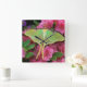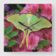 USA, Pennsylvania. Luna moth on pink clematis Square Wall Clock
