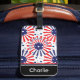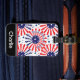 Customisable Luggage Tag with red and blue American pickleball elements on white background. Perfect as a gift for a American pickleball player.
