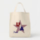 USA Plaid Star Grocery Tote-In the centre of the bag is an over sized plaid star. The plaid is from a collection of red, white and blue plaids (see them all in the fabric store). The star is beveled and textured and trimmed with digital stitching. On top of the star is the letters USA spelled out in red, white and blue. These are also textured, beveled and trimmed in digital stitching. One text area is in place (blue print) for you to personalise with. Edit the text to say anything you like. Delete the text if it's not wanted.