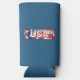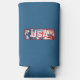 A fun can cooler featuring red, white, and blue, along with "USA." Use the template to personalise. You can keep the text or change.