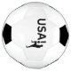 American soccer player using dot of exclamation mark as a ball. Black picture on white background