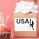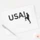 American soccer player using dot of exclamation mark as a ball. Black picture on white background