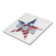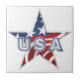 Star designed with the stars and stripes of the American flag with silver USA text.