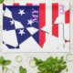 Red, White, Blue: These traditional colours of the US flag are used throughout the fragmented stripes and stars, ensuring a patriotic and recognisable appearance. The colours are bright and saturated, enhancing visual impact.