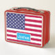 Show your patriotism with this Lunch Box featuring the Municipal Flag of the State of Florida USA with a licence plate on one side and the Star Spangled Banner with a name licence plate on the other side. The text name can be changed.