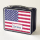 Show your patriotism with this Lunch Box featuring the Municipal Flag of the State of Washington USA with a licence plate on one side and the Star Spangled Banner with a name licence plate on the other side. The text name can be changed.