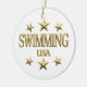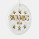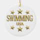 Share your support for the American Swimming team with a golden design with stars and the words - Swimming USA.