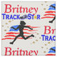 This USA Track and Field Star will love to show her love for Cross Country and running with this American Flag personalised Track Star personalised fabric. Inspire your talented runner with one of our motivational Running designs on Tees, Apparel, Jewellery, Drink ware, Bedroom décor, Posters, and an exceptional selection of gifts at www.zazzle.com/mysportsstar. This Track and Field Girl was meant to be a Sports Star. Our unique and exceptional Track and Running personalised fabric can be used to create a fantastic gift for Birthdays, Holidays, and any Occasion. This Runner is fast as lightning.
