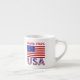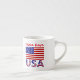 Personalised espresso cup features the flag of the United States of America with the letters USA below in the red, white and blue with stars and stripes, found in the flag. Personalise by adding your name, in red letters, or, for a creative gift, by adding someone else's name. Great for patriotic holidays like Independence Day. Fun to take to family reunions, travel groups, and clubs. Terrific housewarming gift for your patriot. Mum would like this for a Mother's Day gift.